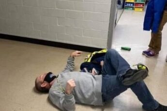 Yesterday, one of our kids was too upset to walk into school. That’s when Mr. Burwick lay right down