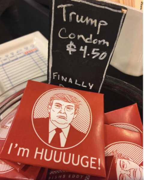 Some of the newly published photos go beyond simple group snapshots. One image shows a table laid out with novelty condoms featuring Donald Trump’s face, with a sign behind them reading “Trump Condom $4.50.”