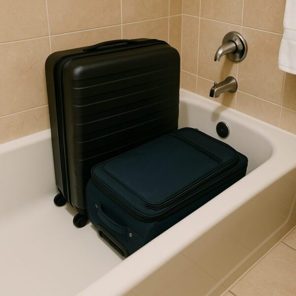 Putting your suitcase in the bathtub might look odd, but it’s a simple, low-effort trick that can dramatically cut your chances of taking unwanted pests home with you.
